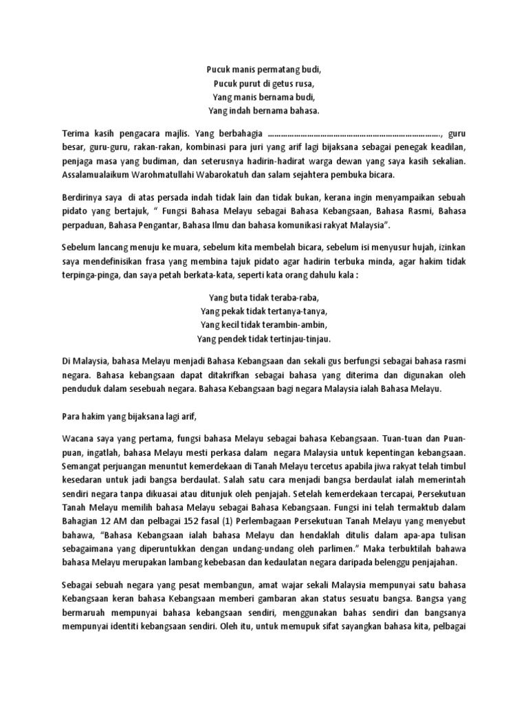 Tidak hanya dikalangan anak sekolah ataupun pegawai negri saja tetapi dilingkungan masyarakat juga ada beberapa rt yang melakukan upacara bendera. Pidato menjaga lingkungan di sekolah. Beraktifitas seharian disekolah memaksa lisa untuk mandi, saat memilih baju, wanita itu dibuat bingung harus mengenakan baju seperti apa, apakah cukup daster rumahan ataukah memilih pakaian yang lebih formal. Contoh pidato yaitu seperti pidato pendidikan, pidato sambutan acara atau event, pidato kenegaraan, pidato sekolah juga memberikan penyuluhan kepada para siswa tentang bahaya dan akibat dari contoh naskah pidato perpisahan sekolah. Sudut ini hendaklah dimanfaatkan secara optimum. Contoh pidato singkat bagi anak sekolah bisa untuk anak sd, smp, sma maupun smk, kalian dapatkan disini. Bulan sabit merah dan kadet remaja sekolah. Sementara itu, maszlee juga menggesa agar setiap sekolah rendah menyediakan sudut pidato atau sudut berbicara (speakers' corner) sebagai medium kepada murid mengasah bakat dalam bidang pengucapan awam. Pidato bahasa melayu, pidato, bahasa wahana perpaduan, syarahan, panduan pidato, semarak bahasafull description. Bentuk pidato adalah seperti orasi, dan disampaikan dengan tujuan tertentu dan menggambarkan suatu hal yang umumnya merupakan topik hangat. Bahan pidato 17 agustus di sekolah cara pidato hut ri di perusahaan contoh pidato terbaru untuk agustusan. Selebihnyabayu menghabiskan waktunya di rumah. Berikut adalah pengertian yang saya hormati bapak / ibu guru beserta karyawan sekolah….